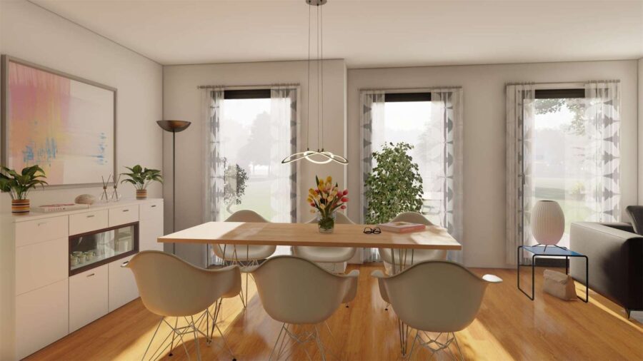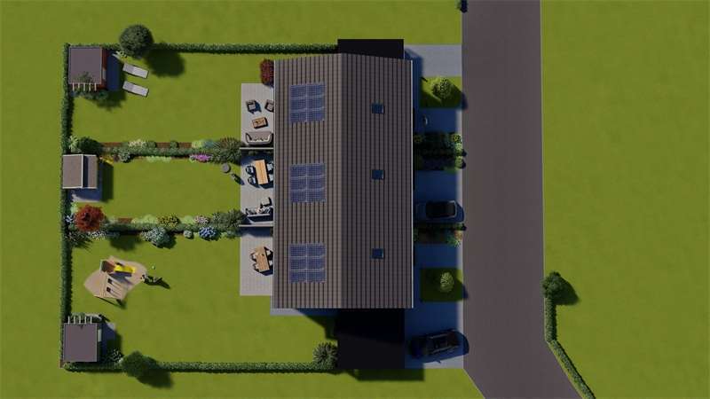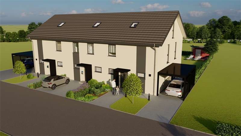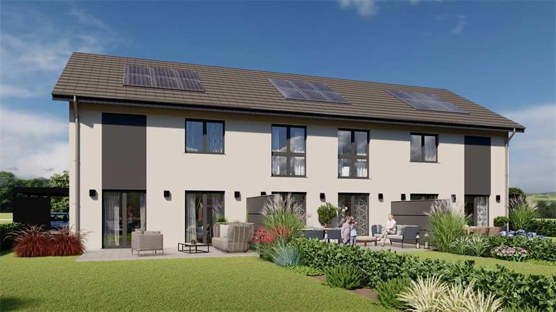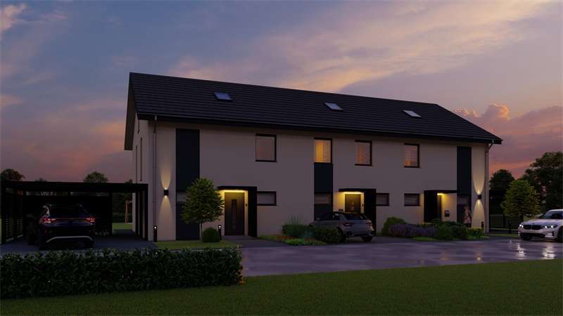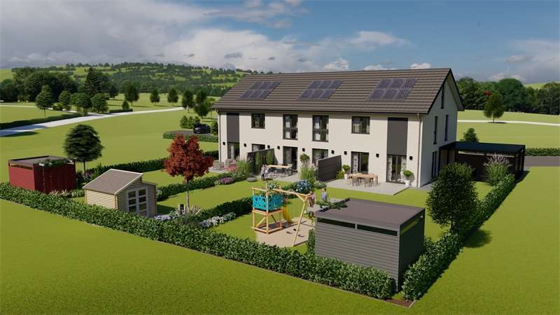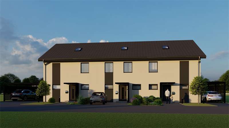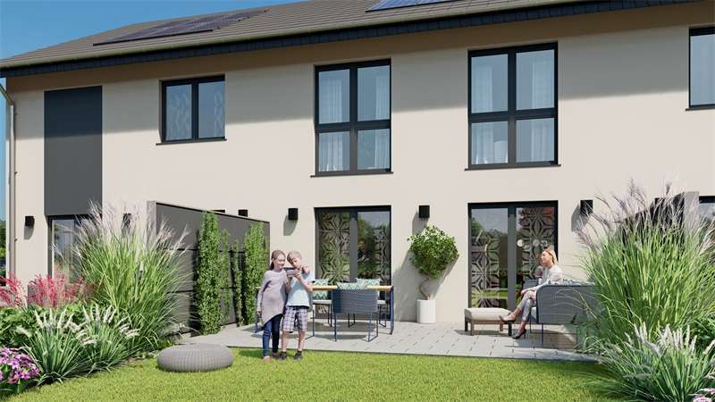 Hier im Luftkurort Rödinghausen, direkt am Wiehengebirge, planen wir den Bau dieser Reihenhausanlage. Es sollen 3 familiengerechte Häuser entstehen. Die Aufteilung eignet sich für fast alle Familiengrößen und auch über lange Zeit hinweg. Der Wohnbereich befindet sich in der ganzen Breitseite mit Blick nach Süden in den davor liegenden Garten. Bodentiefe Fensterelemente sorgen für helle, lichtdurchflutete Räume. Große Schlafräume im Obergeschoß und ein modernes Bad bieten Wohlfühlcharakter. Insgesamt ist die Grundrissplanung so ausgelegt, dass das Haus allen Lebenssituationen gerecht bleibt, also im Alter auch noch bewirtschaftet werden kann. Die Energietechnik wird zukunftsweisend auf regenerative Systeme ausgerichtet, das bedeutet standartmäßig eine Luft-/Wasserwärmepumpe oder alternativ gegen Aufpreis eine Photovoltaikanlage mit Speicher Akkus. Hier können Sie sorglos als Familie einziehen und bis ins Rentenalter das Wohnen genießen.